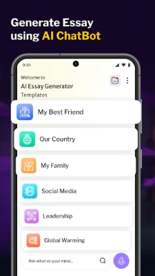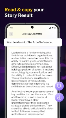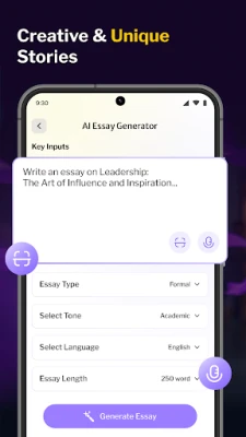 With advanced AI natural language processing, this essay generator crafts professional and high-quality content with minimal effort. No more writer’s block - just enter your topic, and the app will generate an AI-assisted essay instantly!