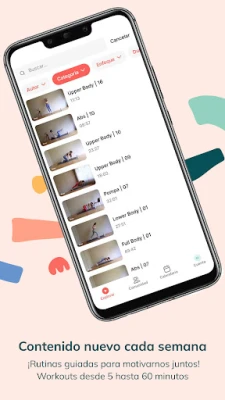 Podrás encontrar rutinas desde 5 minutos hasta 60. Rutinas de brazo, pompa, abdominales, full body, etc. Rutinas con equipo y sin equipo. Simplemente se adapta a lo QUE TU NECESITAS, para que puedas ir creciendo a tu propio ritmo, sin importar en donde estés.