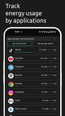 - Detailed battery usage insights.