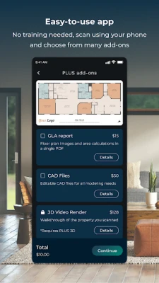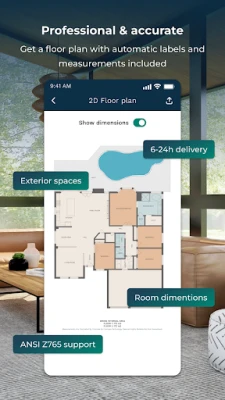 • Scan an indoor space (no sketching, measuring on-site or tapping on corners)