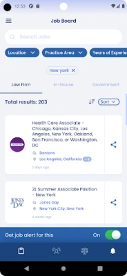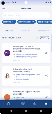 * Be the first to know about newly posted job listings from law firms, in-house and government employers.