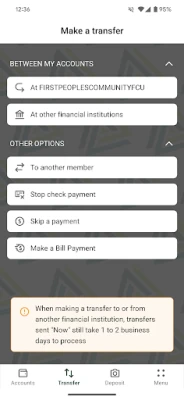 First Peoples Community Mobile Banking allows you to check balances, view transaction history, transfer funds, and pay loans on the go!