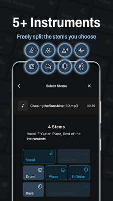 • Vocal remover & stem separator: Extract vocals, drums, bass, guitar, piano, and more in lossless audio quality