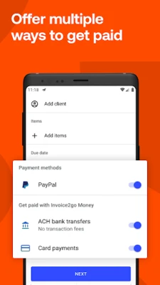 Invoice 2 go is made to be your office in your back pocket. Manage your entire small business from the palm of your hand. From invoices, billing, estimates, quotes, websites, to time tracking, Invoice 2go has you covered. Whether you're self-employed, a small business owner, handymen, contractor, HVAC tech, auto mechanic, builder, or a freelancer that needs a simple and professional mobile invoice app – look no further.