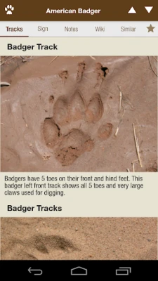 iTrack Wildlife goes far beyond what a traditional field guide can offer with powerful search tools that make track identification easier than ever before. Simply select basic characteristics of a track you want to identify and you will quickly narrow down your search to just a few similar tracks. Then, browse through the photos until you find your track.