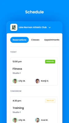For members of Lake Norman Athletic Club to reserve their place in a class, sign up for gym events, and general account management like updating headshots and credit card on file.