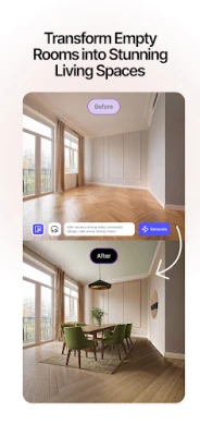· Virtual Staging: Instantly redesign interiors by adding furniture, lighting, fixtures, and decor. Experiment to find the perfect match for your style.