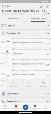 Simply store and retrieve documents, plans and defects, define tasks or share them via communication. With RIB Site, you can release documents individually for project participants or trades on a task-related basis or upload them directly via the portal mode or have them released. In this way, employees in the office and on the construction site always work with the correct level of knowledge and save coordination loops and consultation effort. With the convenient search options and integrated full-text search, users can quickly find the right documents and forward them to colleagues or external project partners via a link.