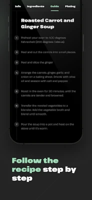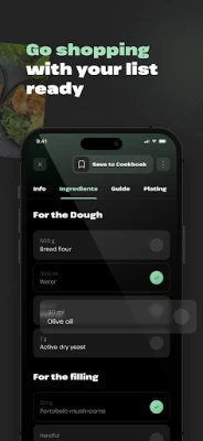 Then, among other things, you'll find precise step-by-step instructions in the recipe or plating ideas to make your dish not only taste good, but also look beautiful. With the list of ingredients, you can head to the store and check off the items you've added to your basket right in the app so you don't miss any of the recipe.