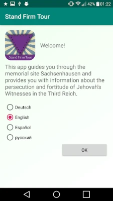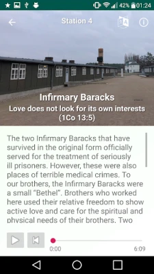 This app guides you through the memorial site Sachsenhausen and provides you with information about the persecution and fortitude of Jehovah's Witnesses in the Third Reich.